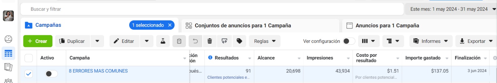One month campaign, 91 leads, each lead for only $1.51!